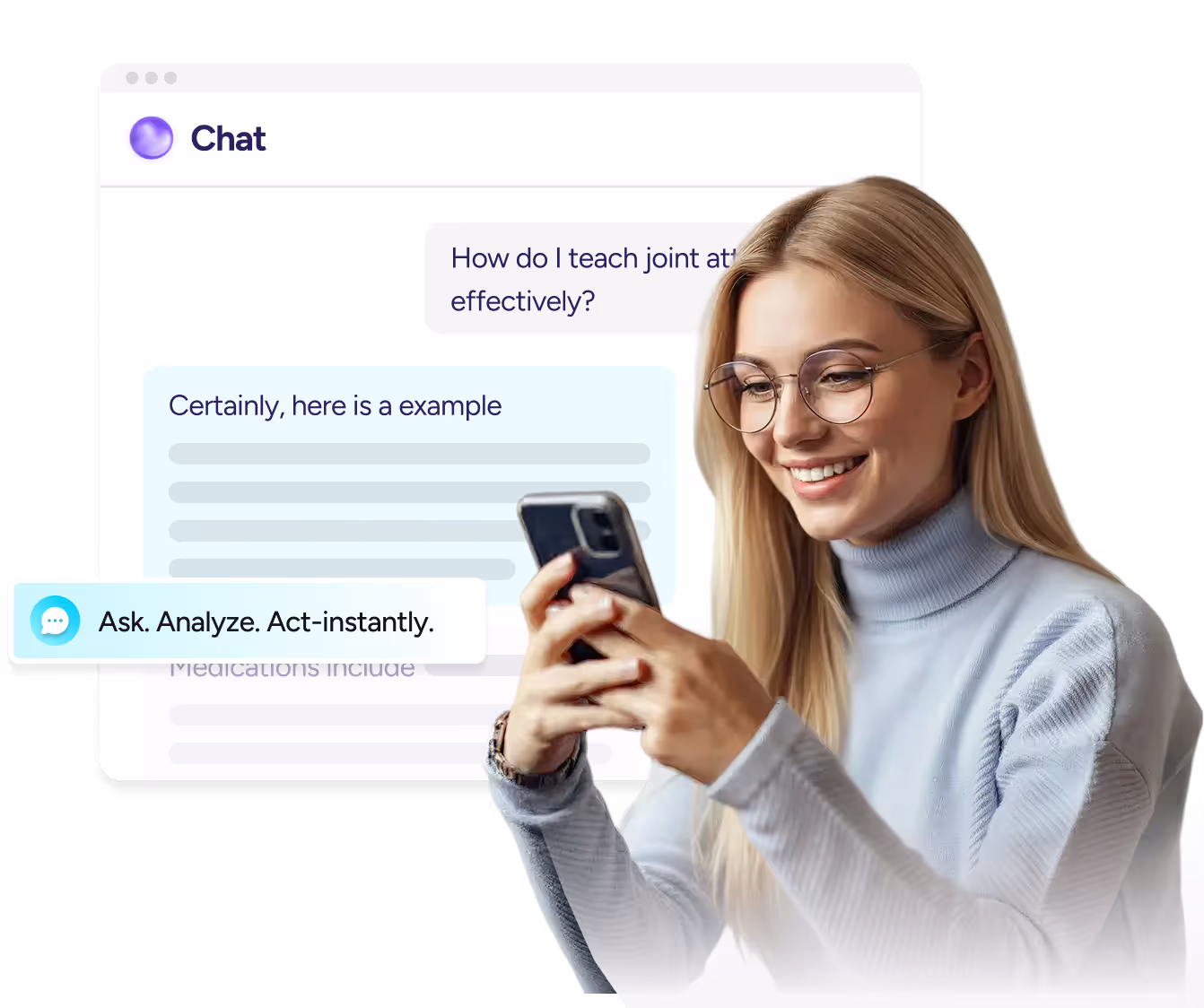 Get precise responses to clinical questions like “How to teach joint attention?” or “What’s the best protocol for DRA?”